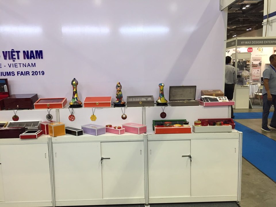 Sản phẩm sơn mài Tư Bốn trưng bày tại Hội chợ Singapore (Singapore gifts and premiums Fair 2019)